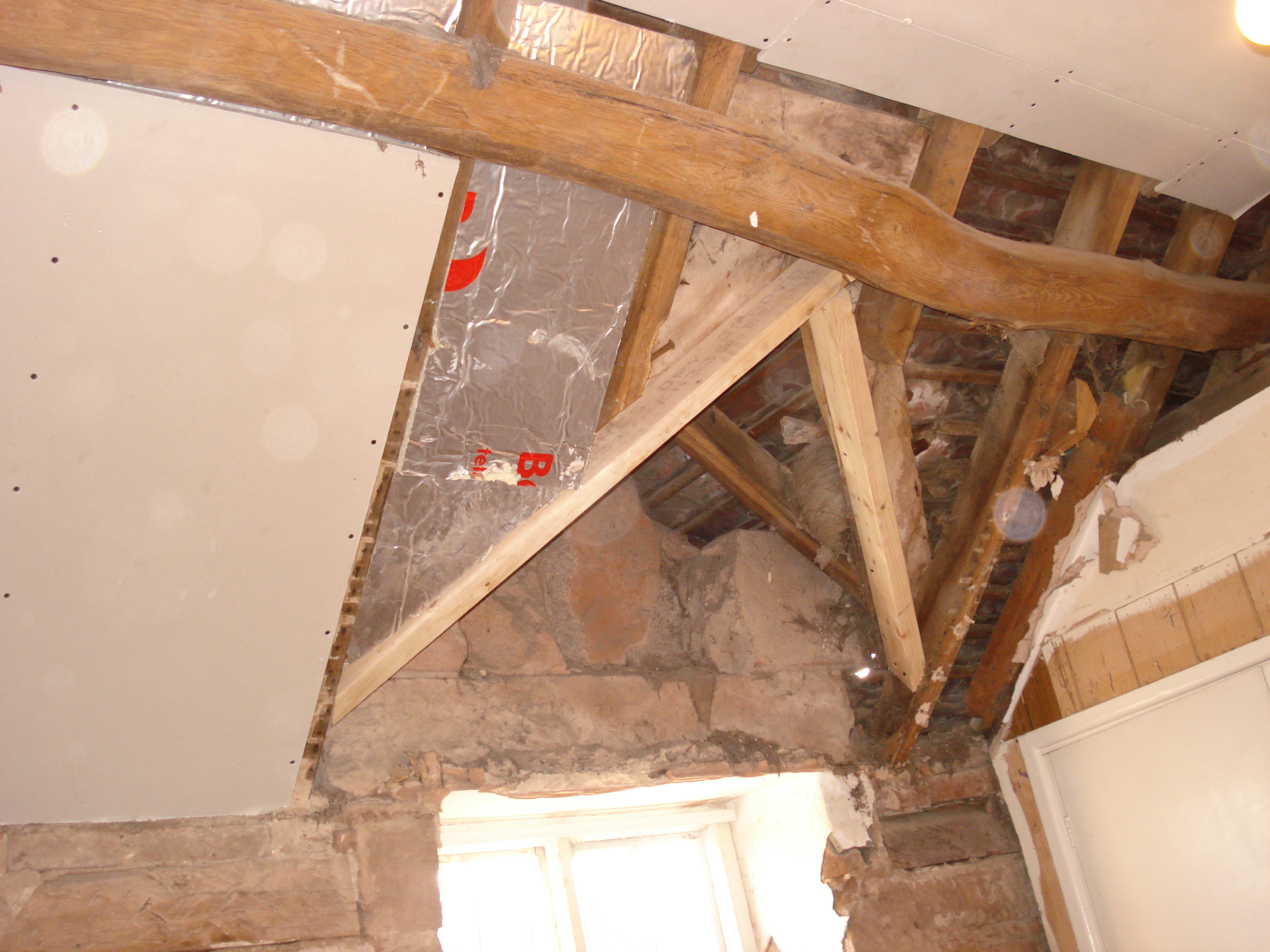 DSC07333 February 9, 2014Full resolution (3072 × 2304) ← Previous Next → I removed all of the old plaster winthin the house and found very old beams. I exposed the beams to make a feature.