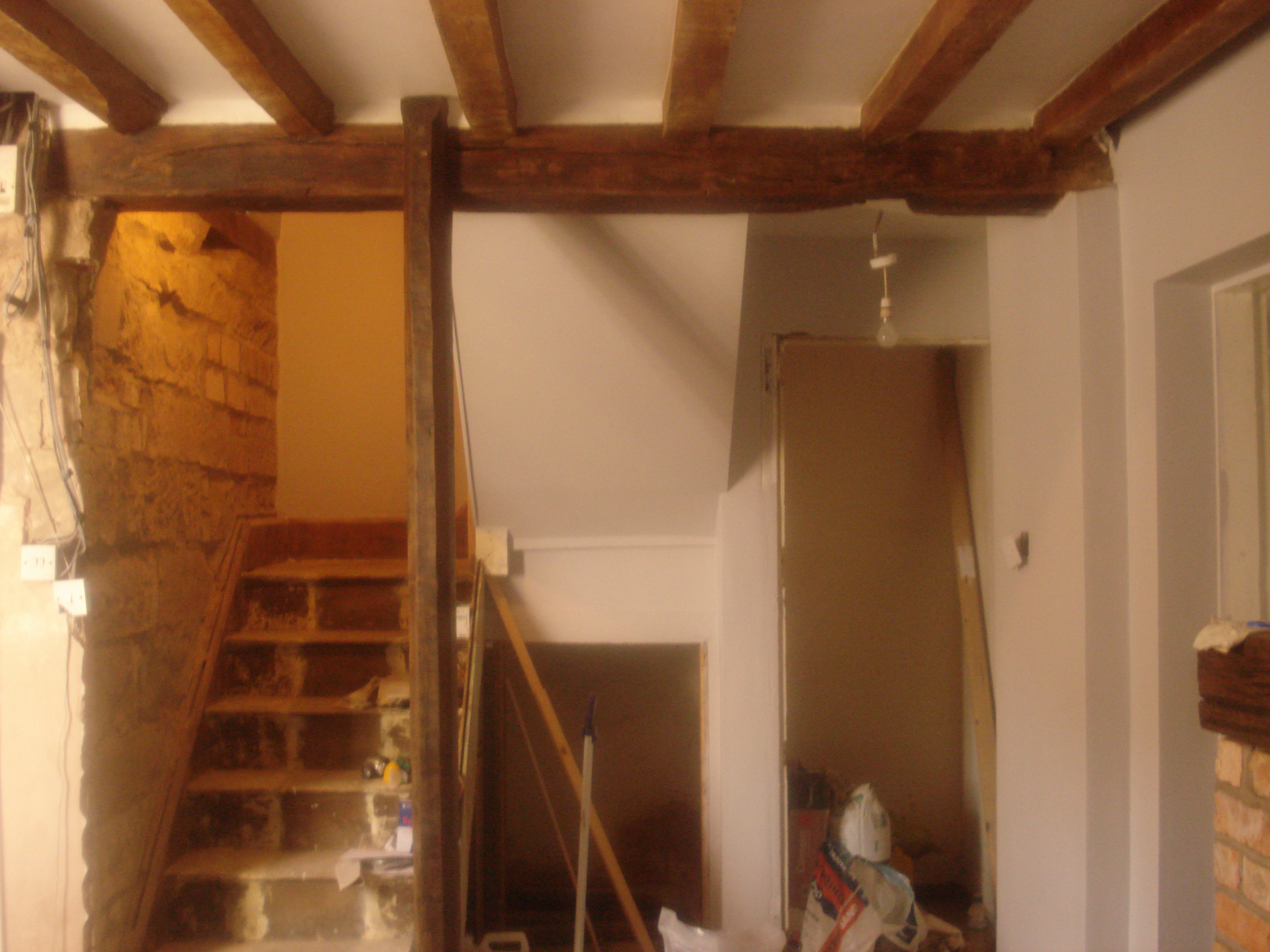 DSC07474 February 9, 2014Full resolution (3072 × 2304) ← Previous Next → In the lounge I removed the plaster and expossed all of the original beams in the ceiling and on the stairs.